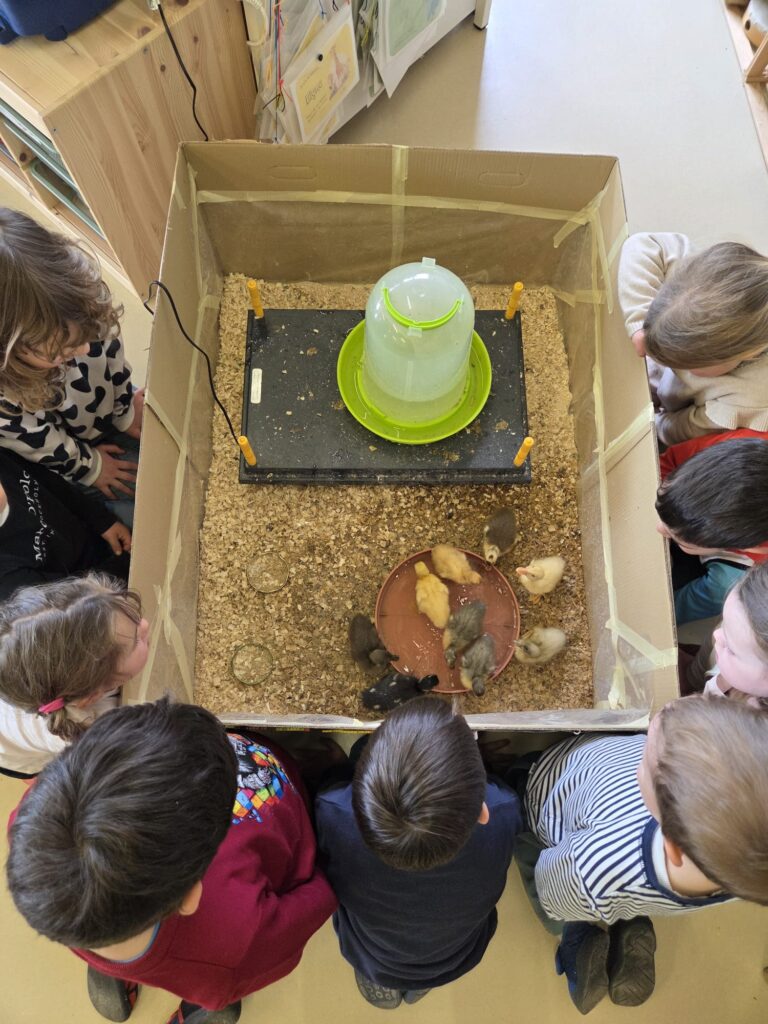 Nous sommes très fiers de leur curiosité, de leur attention et du soin qu’ils ont apporté à ce projet. Les enfants se réjouissent de pouvoir continuer à observer les canetons durant les prochains jours.