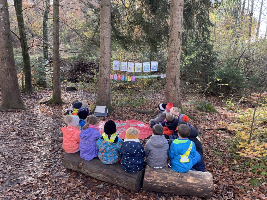 Après avoir savouré le repas et le dessert — de délicieuses pommes au chocolat —, l’après-midi s’est poursuivie par la découverte du chêne. La journée s’est terminée en beauté avec le conte de Mina, la mésange, et la chance d’apercevoir deux mésanges charbonnières ainsi qu’un majestueux chêne.