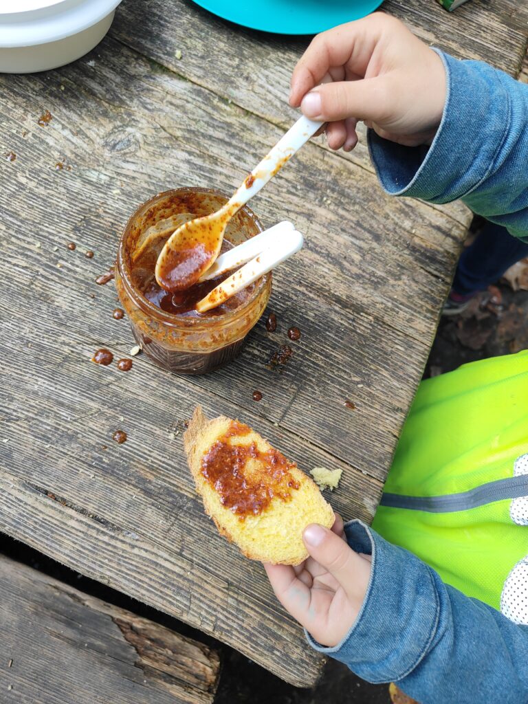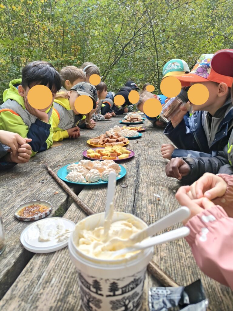 Après l’effort, le réconfort ! Les élèves ont ensuite partagé une dégustation de gourmandises de la Bénichon : cuchaule, moutarde de bénichon, et autres douceurs typiquement fribourgeoises. Une belle façon de découvrir les traditions locales, de goûter les saveurs de notre région et de relier la nature, la culture et la convivialité.