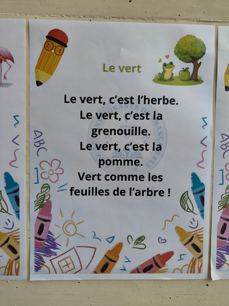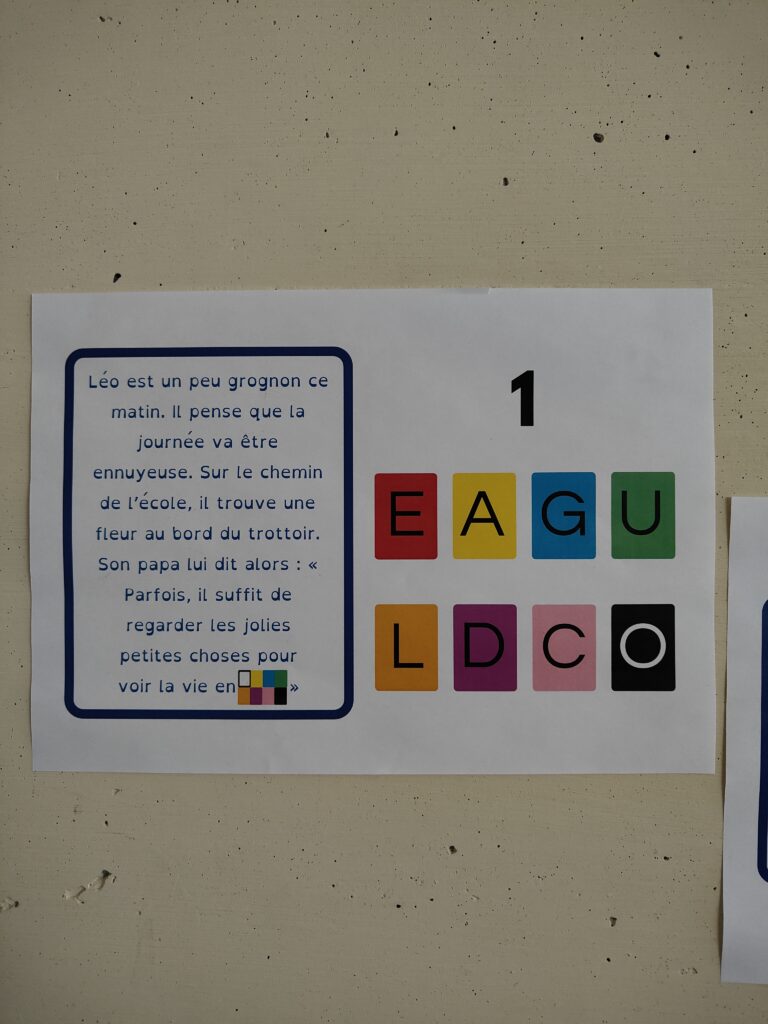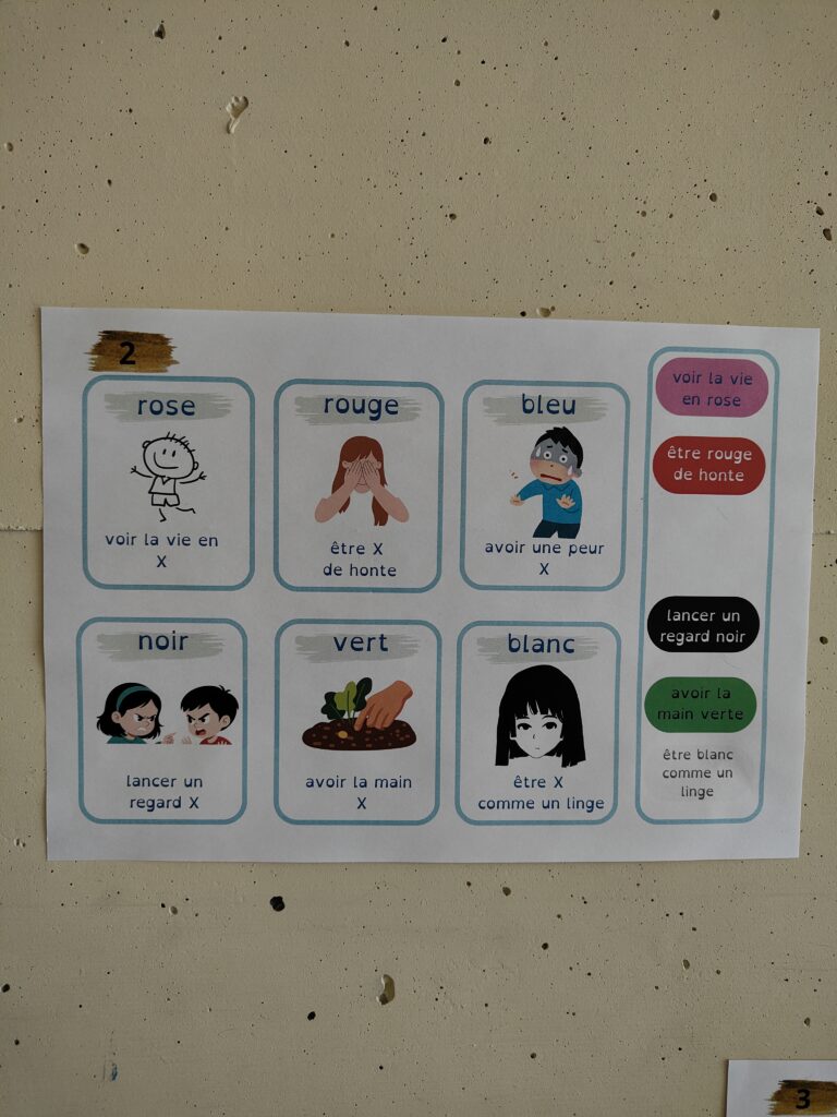 Au fil de la semaine, ils ont découvert les œuvres de divers peintres à travers de magnifiques albums. Ils ont également relevé une énigme haute en couleur et appris à utiliser plusieurs expressions comme « voir la vie en rose », « avoir la main verte » ou encore « donner le feu vert ».