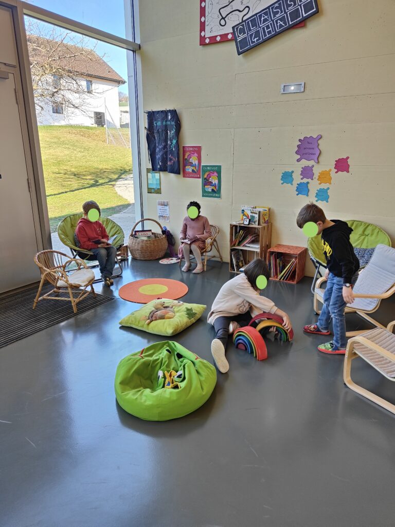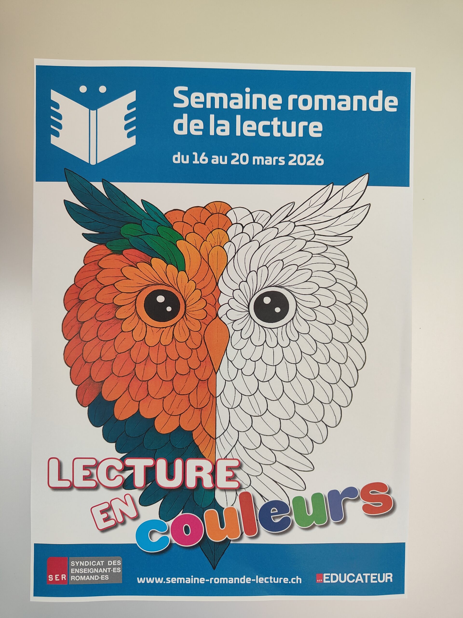 Lors de la « Semaine romande de la lecture », consacrée au thème de la couleur, nos élèves ont particulièrement apprécié le coin lecture éphémère installé dans les couloirs de l’école pour l’occasion. Ils ont pu choisir parmi différentes activités proposées afin de développer leur plaisir et leurs compétences en lecture.