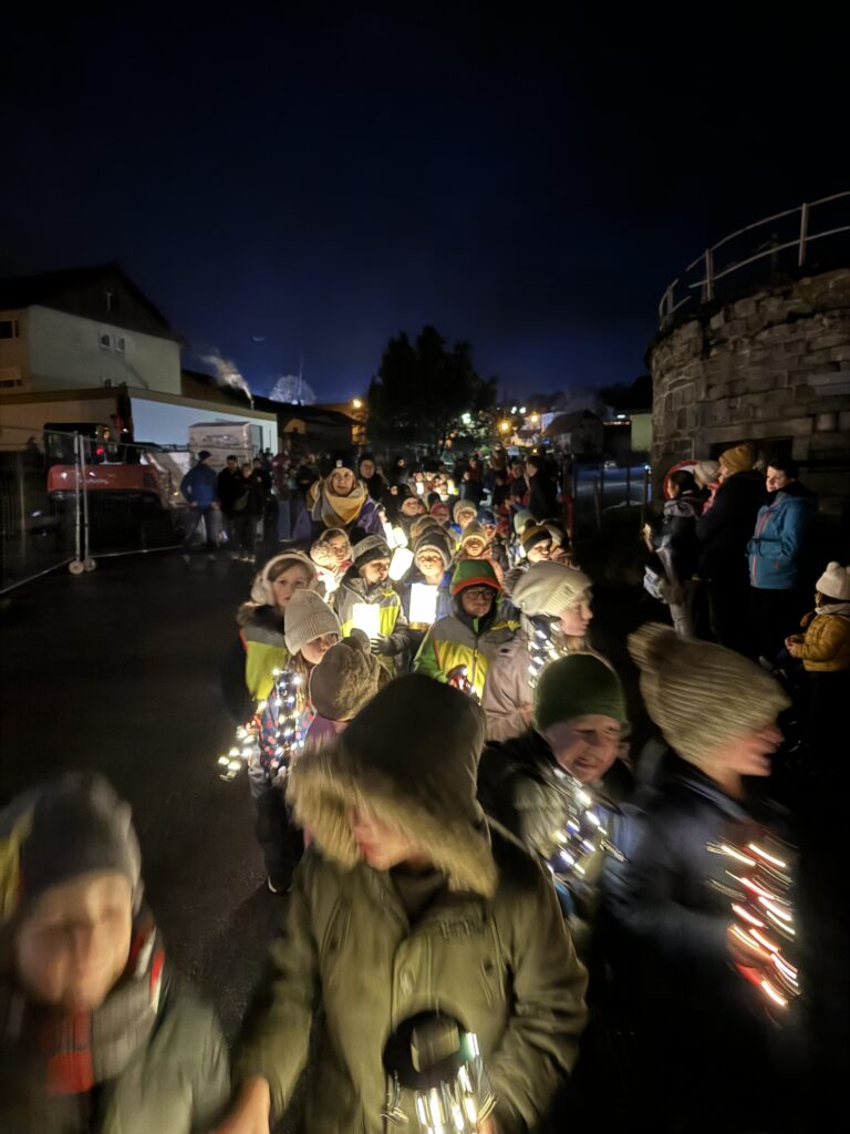 Les élèves de 1H à 4H ont ouvert la soirée avec un cortège enchanté, accompagné de chants préparés avec enthousiasme.